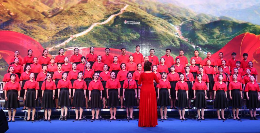歌咏大会上,一首首经典的歌曲在舞台上激情唱响,现场气氛喜庆欢腾,掌声此起彼伏。